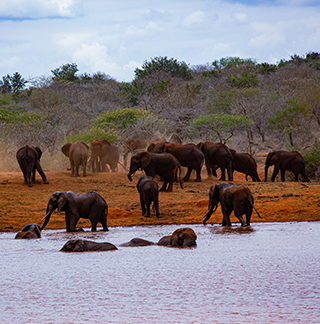 Tsavo East offers vast open plains, fewer crowds, and authentic wilderness. You will see the iconic red-dust elephants, lions, and crocodiles along the Galana River.